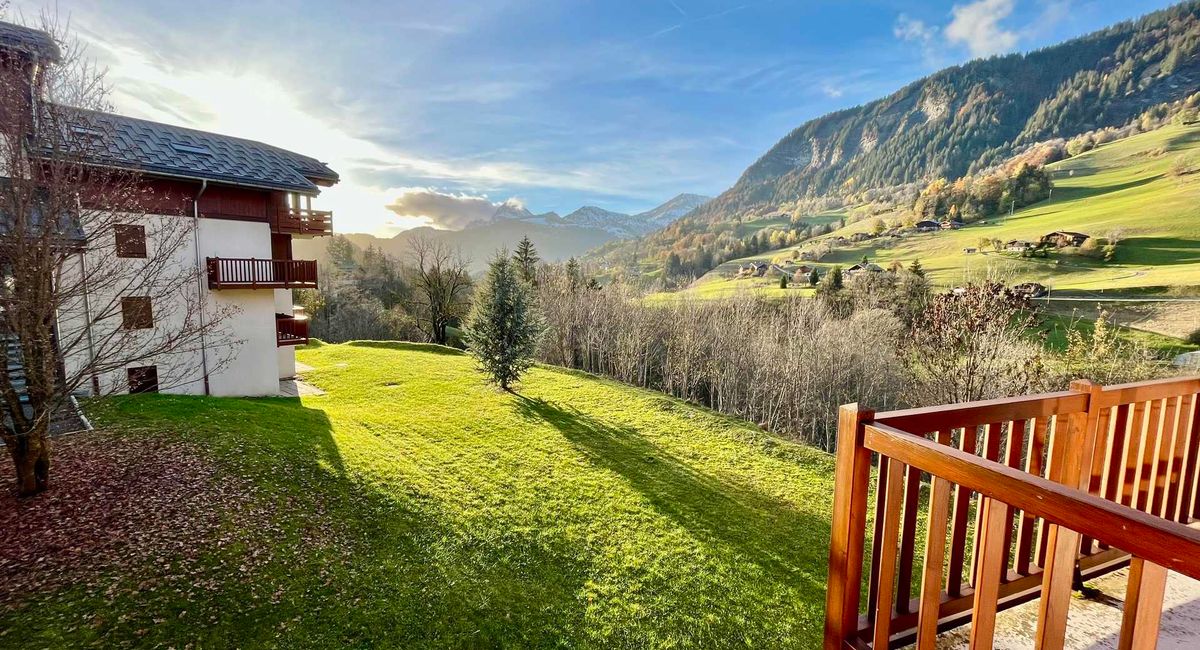 La résidence Les Chalets des Evettes avec piscine est située au pied des pistes de l'Espace Diamant et de l'école de ski. Centre village à 3km.